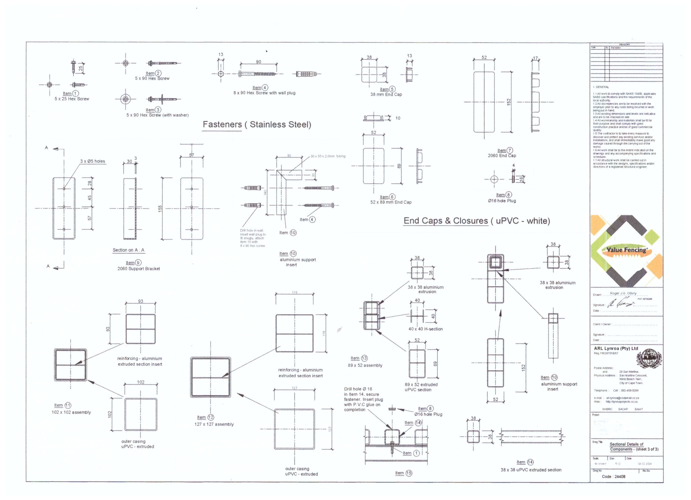 This detailed architect's drawing offers an in-depth look at Value Fencing's PVC pergola design, focusing on specifications, profiles, components, and installation. This technical resource is essential for architects and builders who need a clear understanding of how to construct and install a durable, maintenance-free PVC pergola.