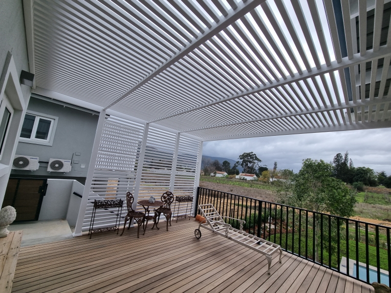 The PVC slatted pergola at Groot Parys solves all three needs.