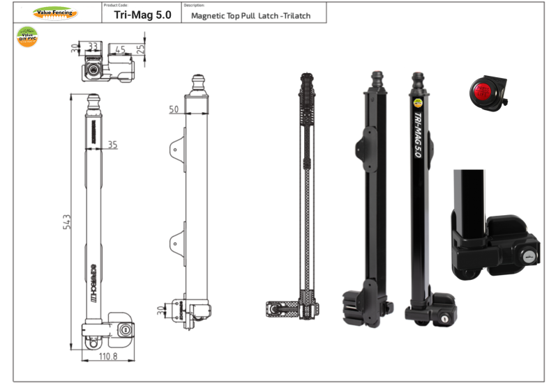 Gates: Pedestrian gates are available to match the PVC Pool Fencing system, fitted with self-closing adjustable Hinges & 2x self-latching latches, top and bottom fool operated, all powder-coated 316 grade Stainless-Steel, or a Tri-Mag 5.0 Self-locking toddler proof Magnetic latch, also available on our DIY Shop for use on all pool gate made from Steel, timber etc.