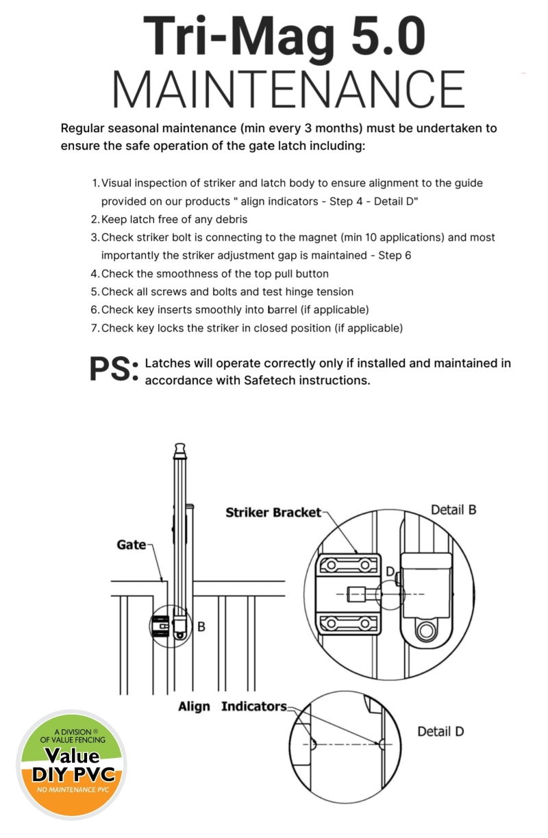 When installed together with Value Fencing's Stainless-Steel Self-Closing Pool Gate Hinges, the Tri-Mag 5.0 ensures: